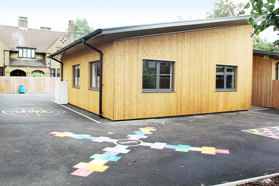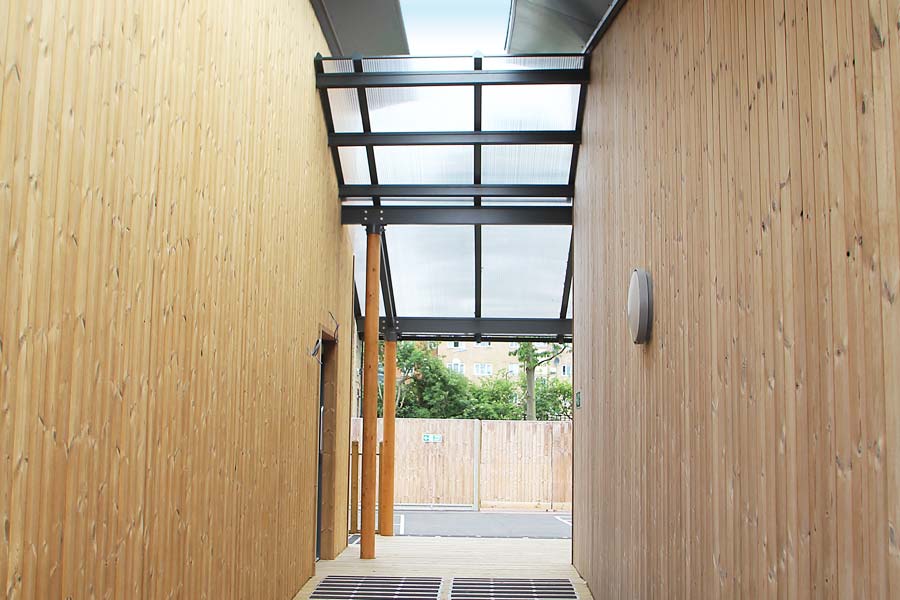 The striking long lines of the veranda area, mono-pitched roofing and linking spaces create a stimulating learning environment. St Matthew's School needed to provide additional classroom space and the eco-classroom was built over two phases to meet the school's increasing pupil numbers.